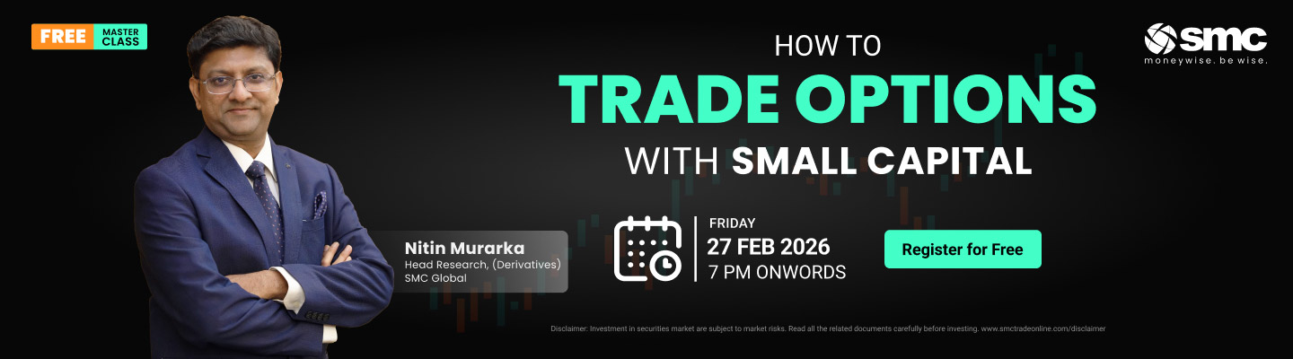 🆓📈 Join Us for a Free Webinar on “How to Trade Options with Small Capital” 📊 🕖 Date & Time: 27th Feb 2026, 7:00 PM onwards 📲 Register Now: https://tinyurl.com/ypp8unhb🎤 Speaker: Nitin Murarka, Head Research (Derivatives), SMC